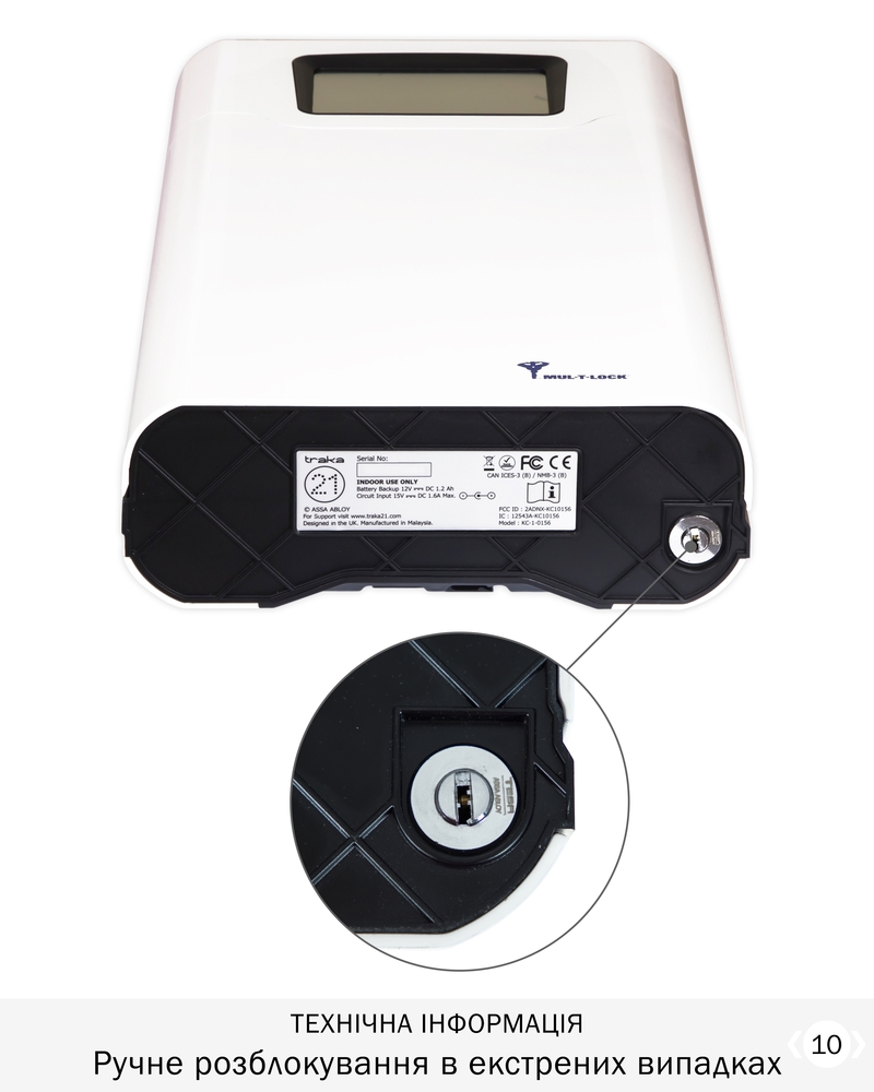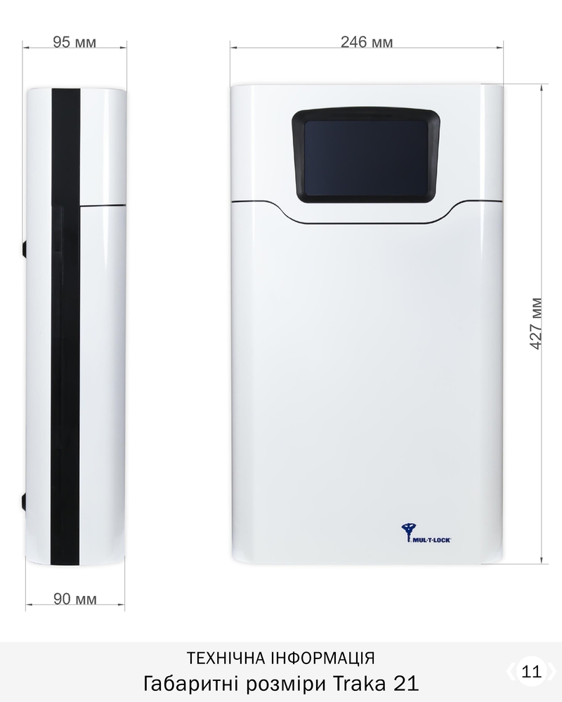 Сейф Mul-T-Lock для ключів TRAKA21 - це досконала автономна система контролю механічних ключів або зв'язок ключів, яка поєднує інноваційну технологію радіочастотної ідентифікації (RFID) та надійний дизайн. Основна функція - забезпечення малих та середніх підприємств сучасним, доступним за ціною засобом адміністрування, розрахованим на 21 ключ.
