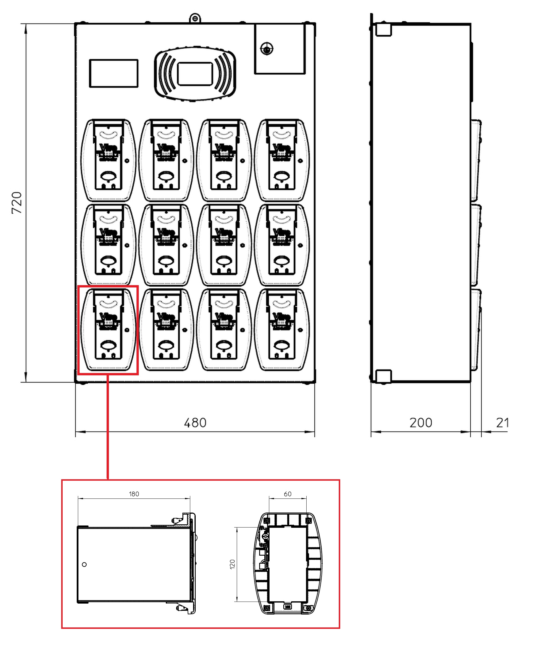 Доступ до відсіків закривається кодованою пластиковою карткою-кришкою, на яку можуть закріплюватись ключі закріплені пломбою.