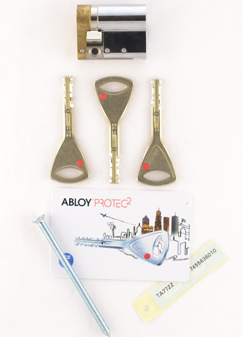 Комплектація: циліндр, 3 ключа, персональна картка+ персональна кодова наліпка, кольорові вставки в ключ, сталевий гвинт М5х85.