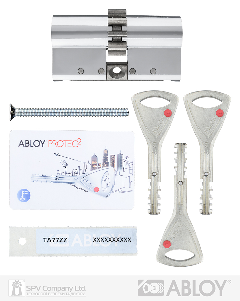 Патентована ключова платформа PROTEC2. Клас Extra Security. Дисковий механізм забезпечує надійну роботу в екстремальних умовах. Корпус підсилений сталевою платою. Функція AWS (Система антизносу) - сукупність елементів у циліндрі та ключі, які мінімізують ефект зносу при роботі циліндра. Захист від висвердлювання – перший диск циліндра з загартованої сталі. Функція "Emergency" (надзвичайна подія) - надає можливість відкрити циліндр ключем з зовнішньої сторони у разі, якщо з внутрішньої сторони в нього вставлено ключ. 2R-технологія нарізки ключа на двох радіусах. Новий унікальний інтерактивний елемент особливої кулькоподібної форми для додаткового захисту від несанкціонованого дублювання ключів. Комплектація: циліндр, 3 ключа, персональна картка+ персональна кодова наліпка, кольорові вставки в ключ, сталевий гвинт М5х85.