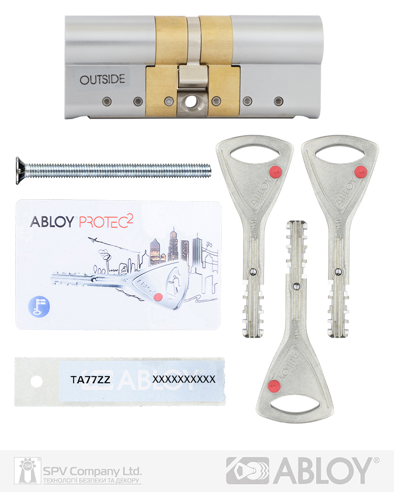 Патентована ключова платформа PROTEC2. Клас Extra Security. Дисковий механізм забезпечує надійну роботу в екстремальних умовах. Корпус підсилений сталевою платою. Функція AWS (Система антизносу) - сукупність елементів у циліндрі та ключі, які мінімізують ефект зносу при роботі циліндра. Захист від висвердлювання – перший диск циліндра з загартованої сталі. Функція "Emergency" (надзвичайна подія) - надає можливість відкрити циліндр ключем з зовнішньої сторони у разі, якщо з внутрішньої сторони в нього вставлено ключ. 2R-технологія нарізки ключа на двох радіусах. Новий унікальний інтерактивний елемент особливої кулькоподібної форми для додаткового захисту від несанкціонованого дублювання ключів. Комплектація: циліндр, 3 ключа, персональна картка+ персональна кодова наліпка, кольорові вставки в ключ, сталевий гвинт М5х85.