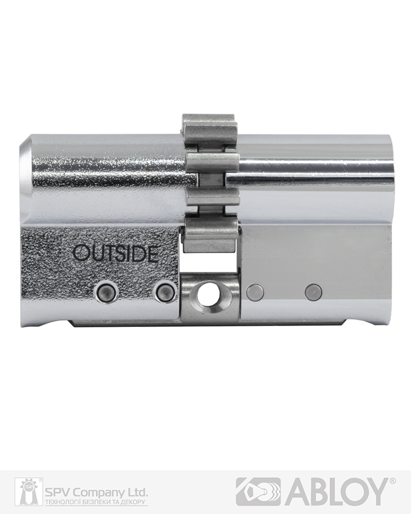 Захист від висвердлювання – перший диск циліндра з загартованої сталі. Функція ""Emergency"" (надзвичайна подія) - надає можливість відкрити циліндр ключем з зовнішньої сторони у разі, якщо з внутрішньої сторони в нього вставлено ключ. 2R-технологія нарізки ключа на двох радіусах. Новий унікальний інтерактивний елемент особливої кулькоподібної форми для додаткового захисту від несанкціонованого дублювання ключів.