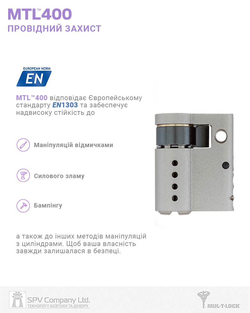 Циліндр MUL-T-LOCK® MTL400 класу High Security стандарту EuroDIN призначений для забезпечення пасивної безпеки та контрольованого доступу до об'єктів охорони.