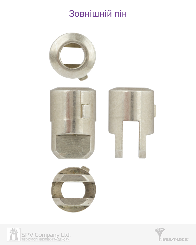 • Один з пінів виготовлений із загартованої сталі і має спеціальну форму.