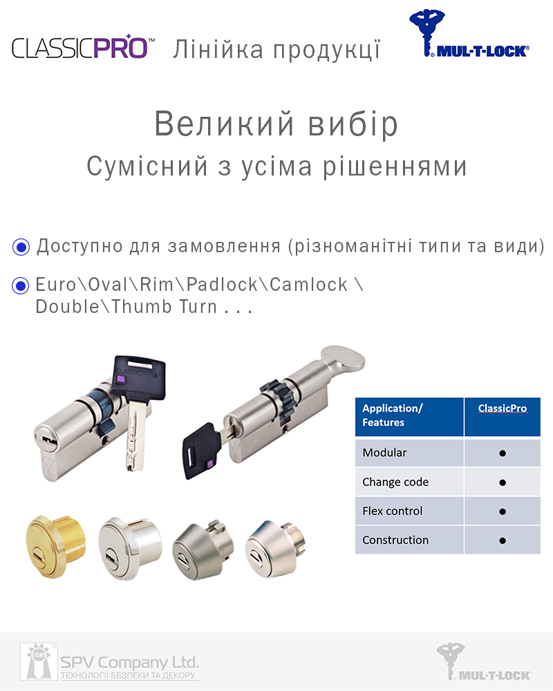 • Можливість виготовлення циліндра в системі Mul-T-Lock Modular, що надає в подальшому змогу оперативно змінити довжину та симетрію циліндра.