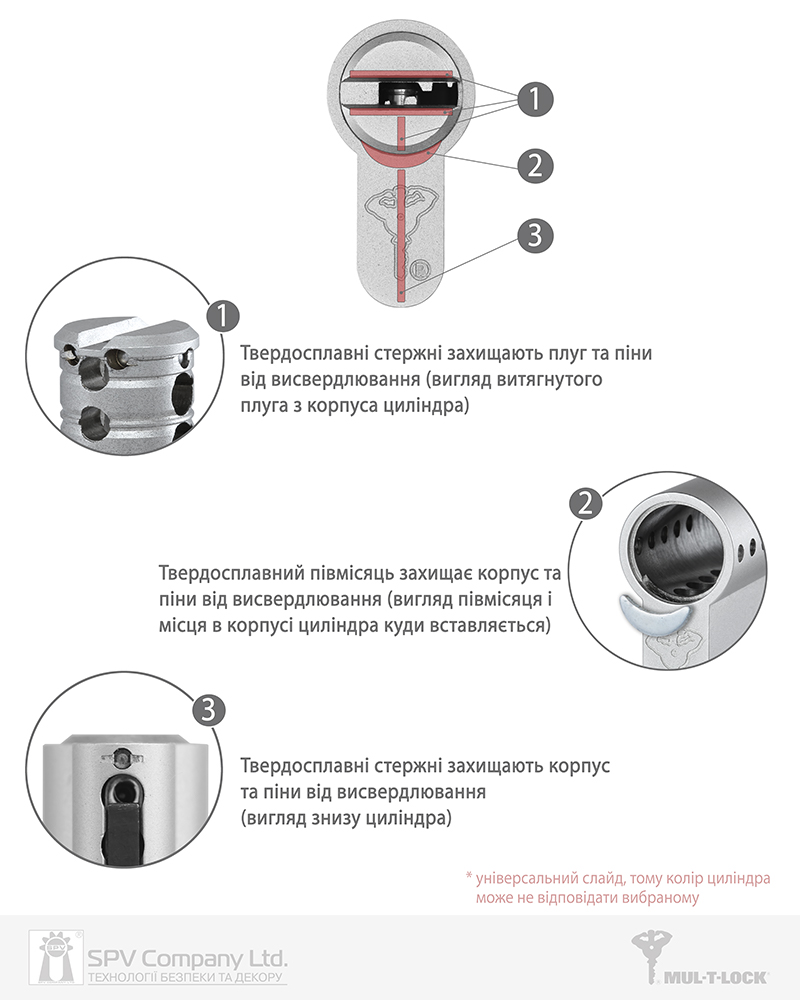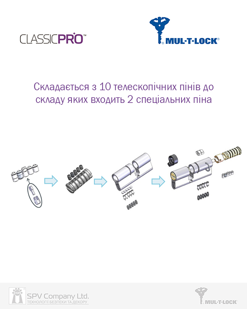 Ця система також дає змогу, в разі потреби, змінити цю довжину та симетрію сердечника, звернувшись до Локсмайстер-центру MUL-T-LOCK®.
