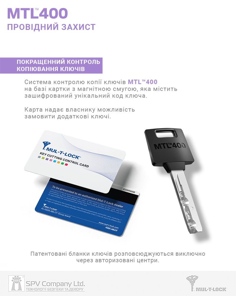 Циліндр MUL-T-LOCK® MTL400 класу High Security стандарту EuroDIN призначений для забезпечення пасивної безпеки та контрольованого доступу до об'єктів охорони.
