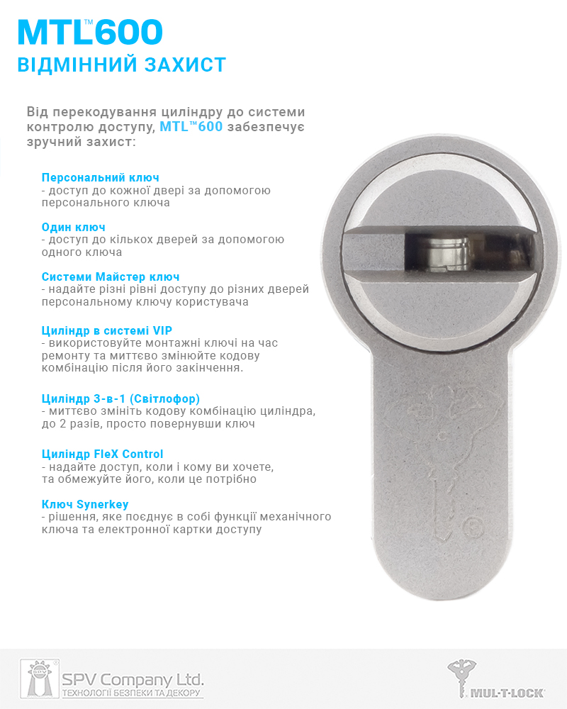Циліндр MUL-T-LOCK® MTL600 класу High Security стандарту EuroDIN призначений для забезпечення пасивної безпеки та контрольованого доступу до об'єктів охорони.