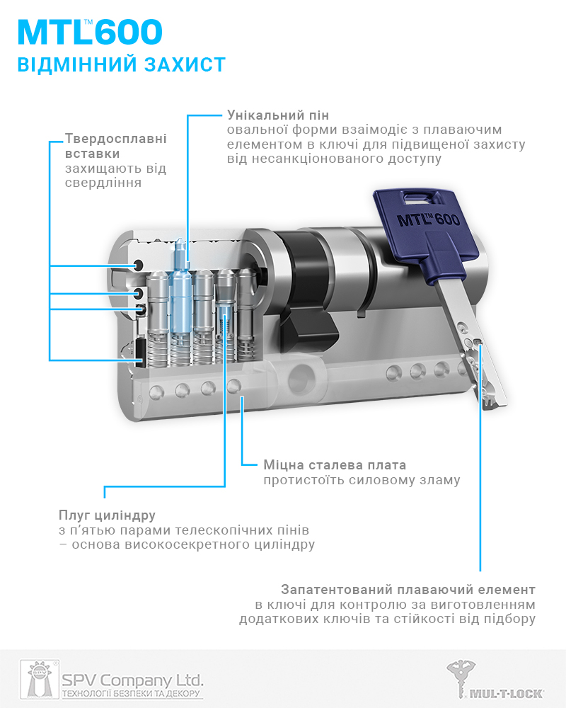 Циліндр MUL-T-LOCK® MTL600 класу High Security стандарту EuroDIN призначений для забезпечення пасивної безпеки та контрольованого доступу до об'єктів охорони.