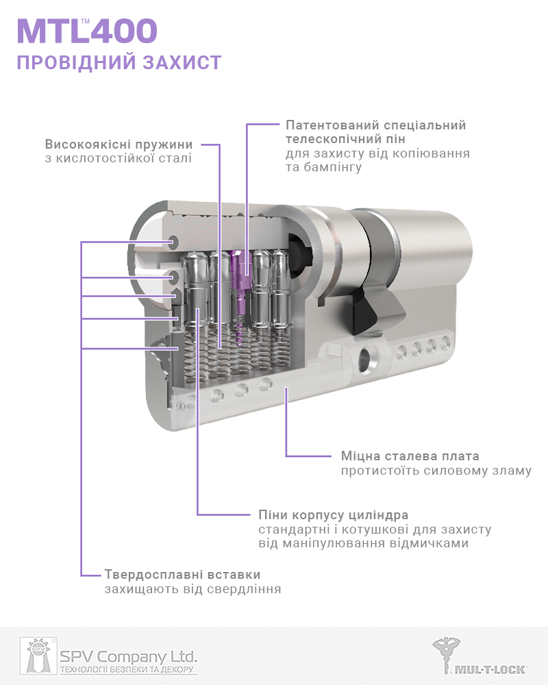 Циліндр MUL-T-LOCK® MTL400 класу High Security стандарту EuroDIN призначений для забезпечення пасивної безпеки та контрольованого доступу до об'єктів охорони.