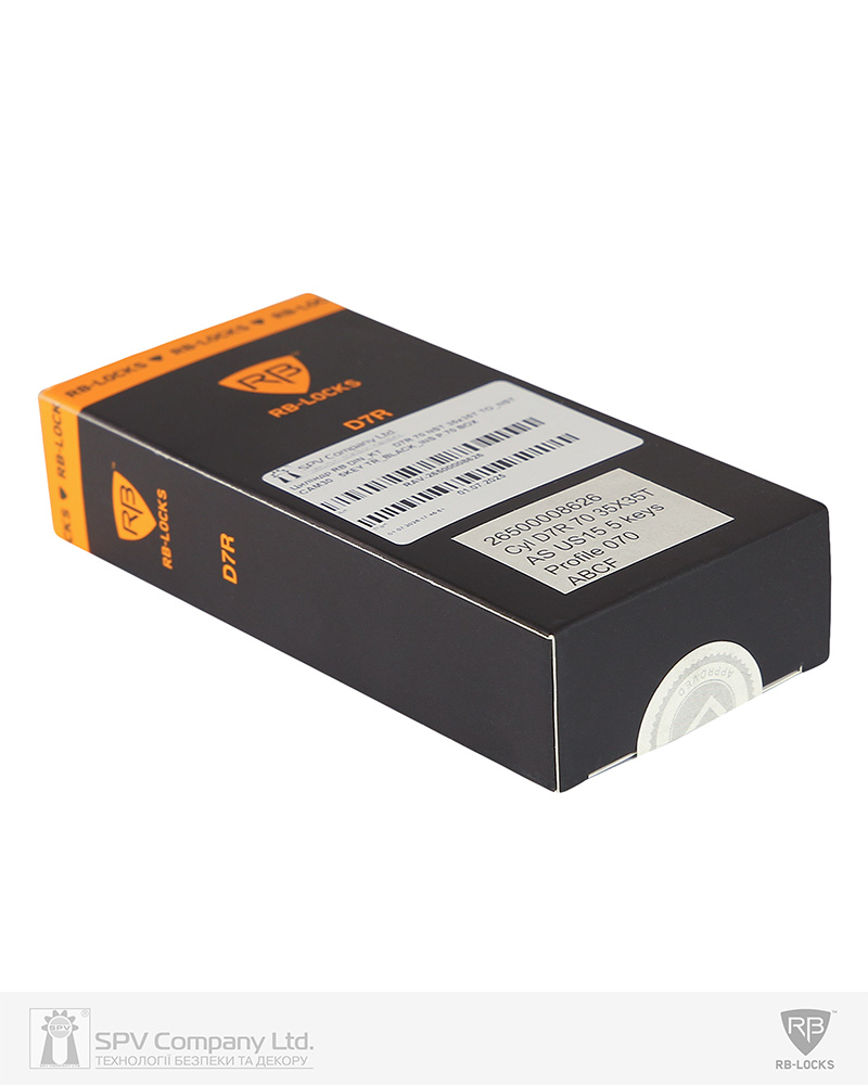 Циліндр RB LOCKS D7R стандарту EuroDIN призначений для забезпечення пасивної безпеки та контрольованого доступу до об’єктів охорони. Серцевина RB LOCKS D7R використовується з основними та додатковими замками стандарту DIN у складі металевих, дерев’яних та профільних вхідних, міжкімнатних та інших дверей.