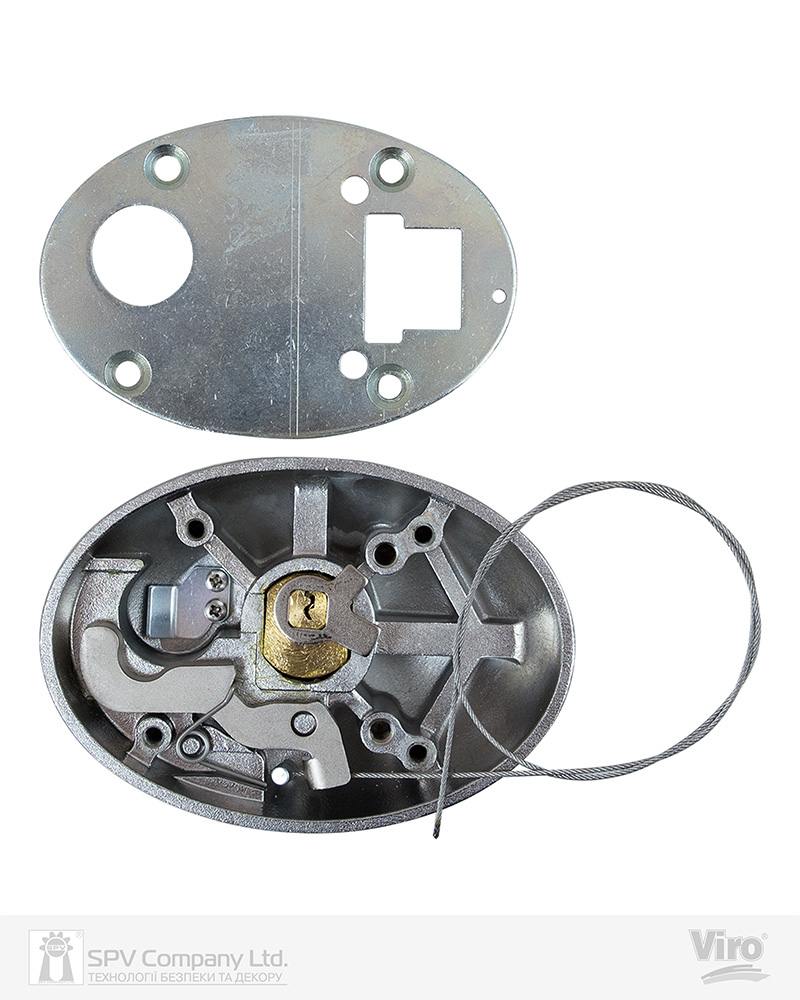 Циліндр з латуні з 7 пінами та захисною пластиною проти висвердлювання. Ключі: поставляється з 3 ключами Viro Top профілю