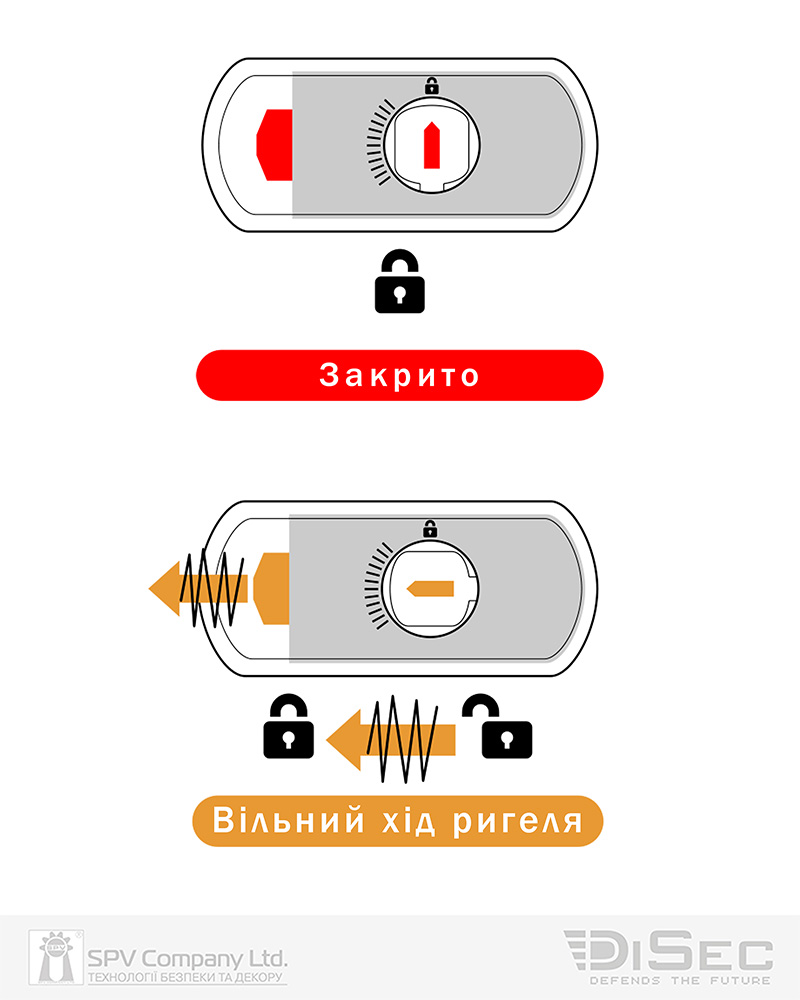 • «Вільний хід ригеля» (Неможливо залишити замок в відчиненому стані).