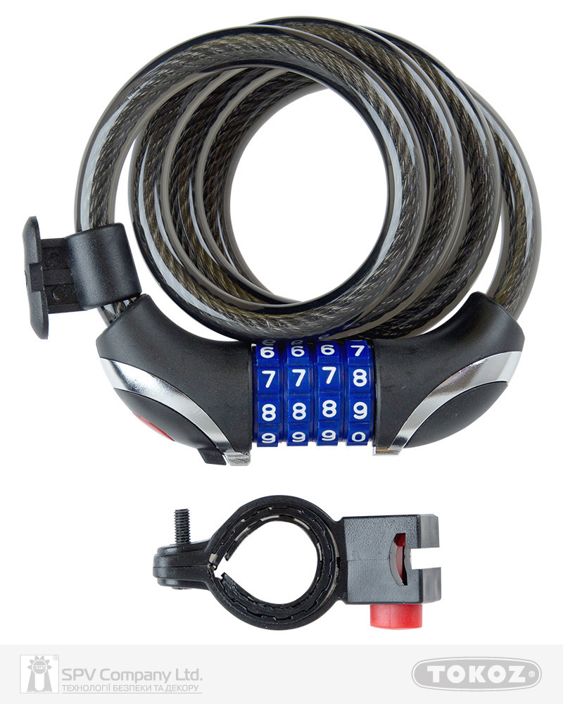 Замок велосипедний кодовий TOKOZ для захисту велосипедів, скутерів, мопедів, мотоциклів та ін.