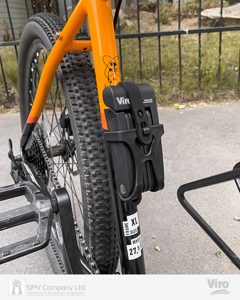 На велосипед замок в складаному вигляде, в чохлі, може бути встановленний на бонки призначені для пляшкоутримувача.