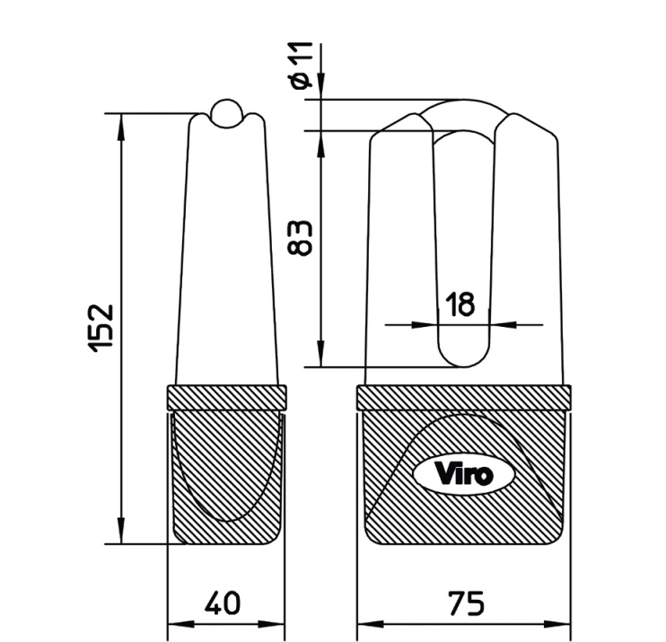Дужка: з загартованої, обмідненої, нікельованої і хромованої сталі, Ø 11 мм.