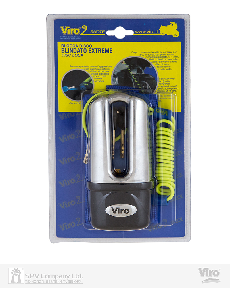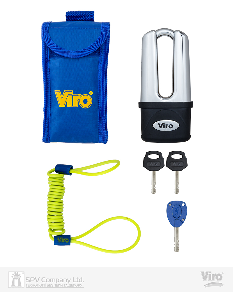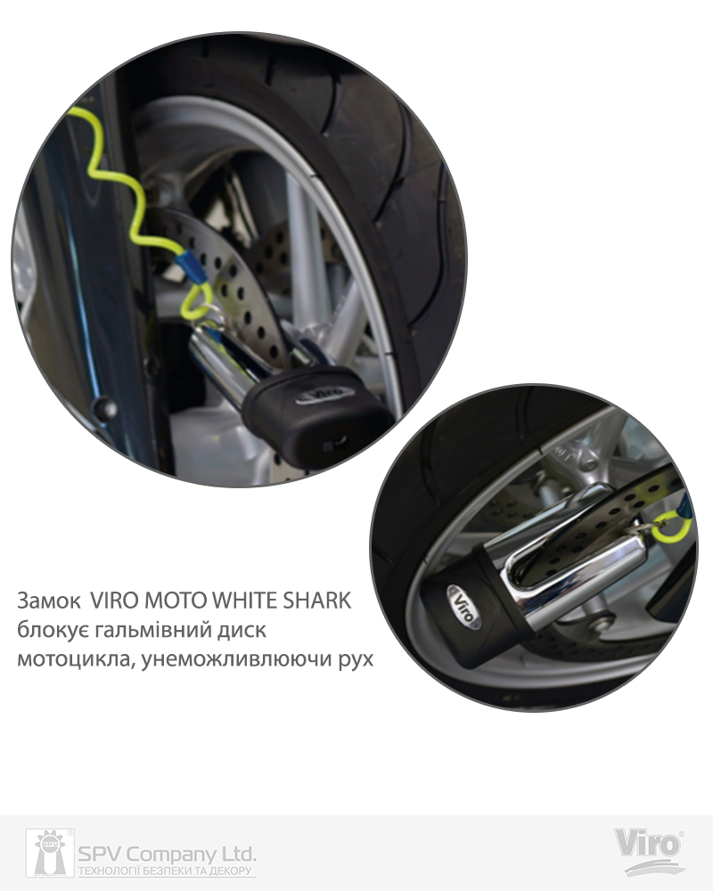 Навісний замок, що блокує гальмівний диск мотоцикла