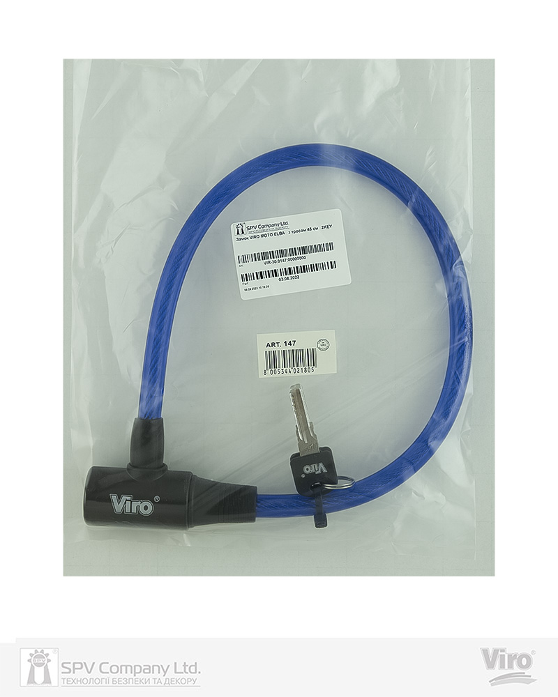 Замок VIRO MOTO ELBA BLUE з тросом 45 см 2KEY