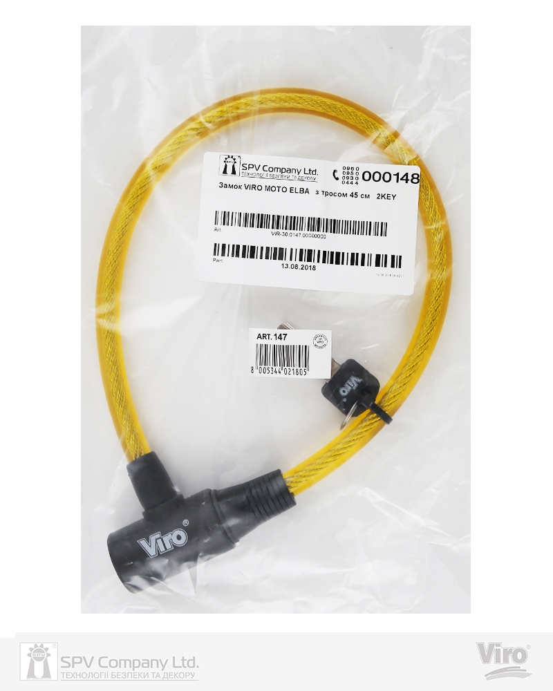 Замок VIRO MOTO ELBA YELLOW з тросом 45 см 2KEY