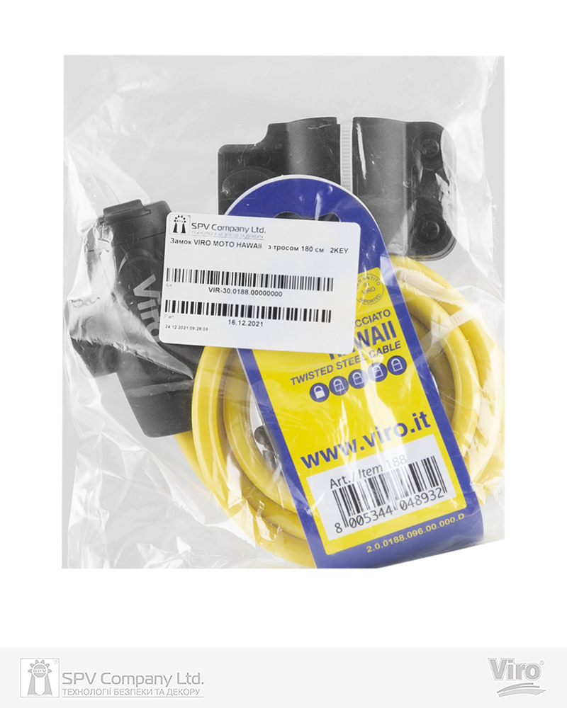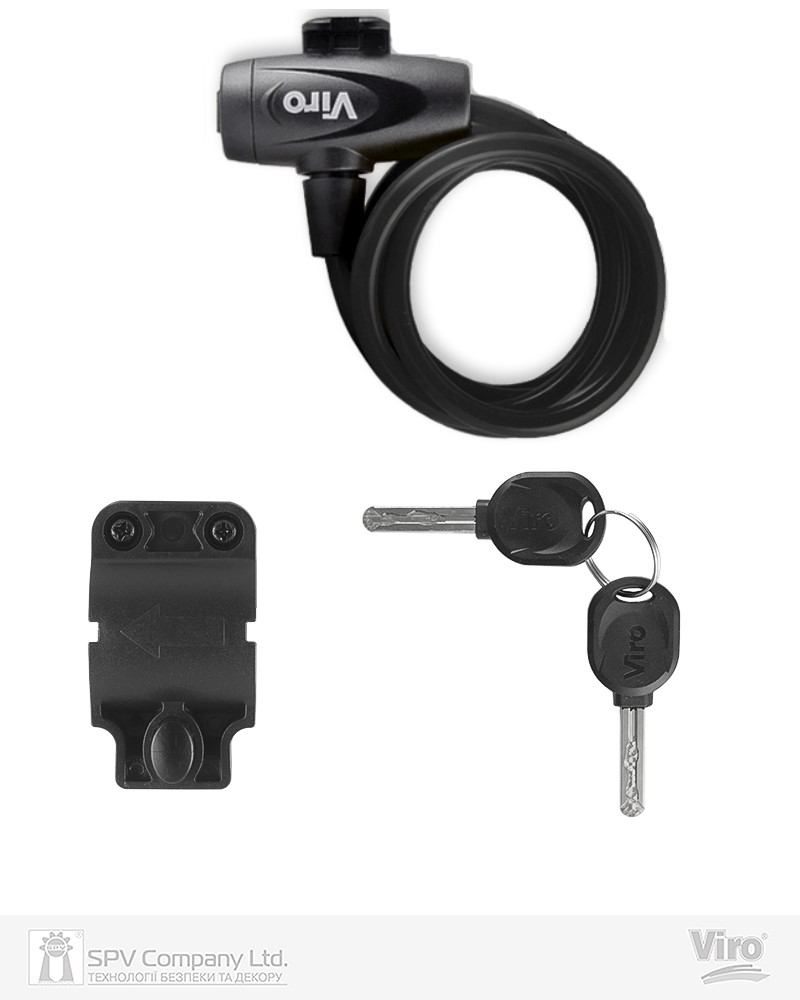 Фото Замок VIRO MOTO HAWAII BLACK з тросом 180 см   2KEY     в інтернет-магазині lock.ua
