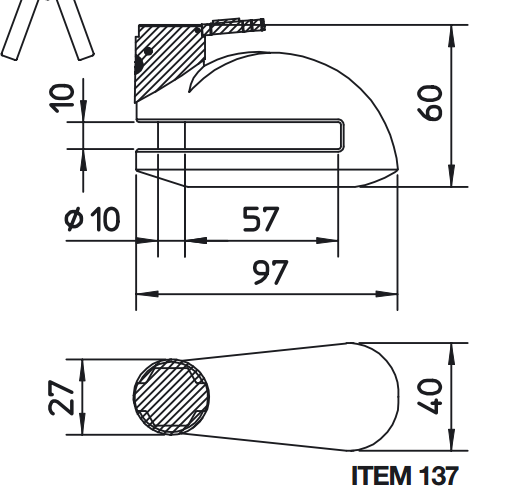 Запірний болт з загартованої, обмідненої, нікельованої і хромованої сталі, Ø 10 мм.