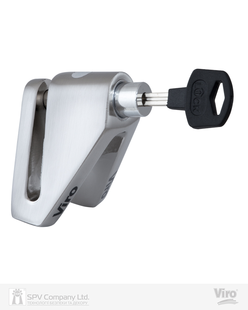 Протиугінний замок, що блокує гальмівний диск мотоцикла