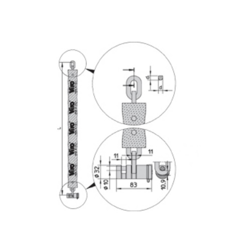 Калібр ланцюга (діаметр перетину прутка, з якого зроблено ланцюг)- 10 мм; захищений кожухом синього кольору з тканини.
