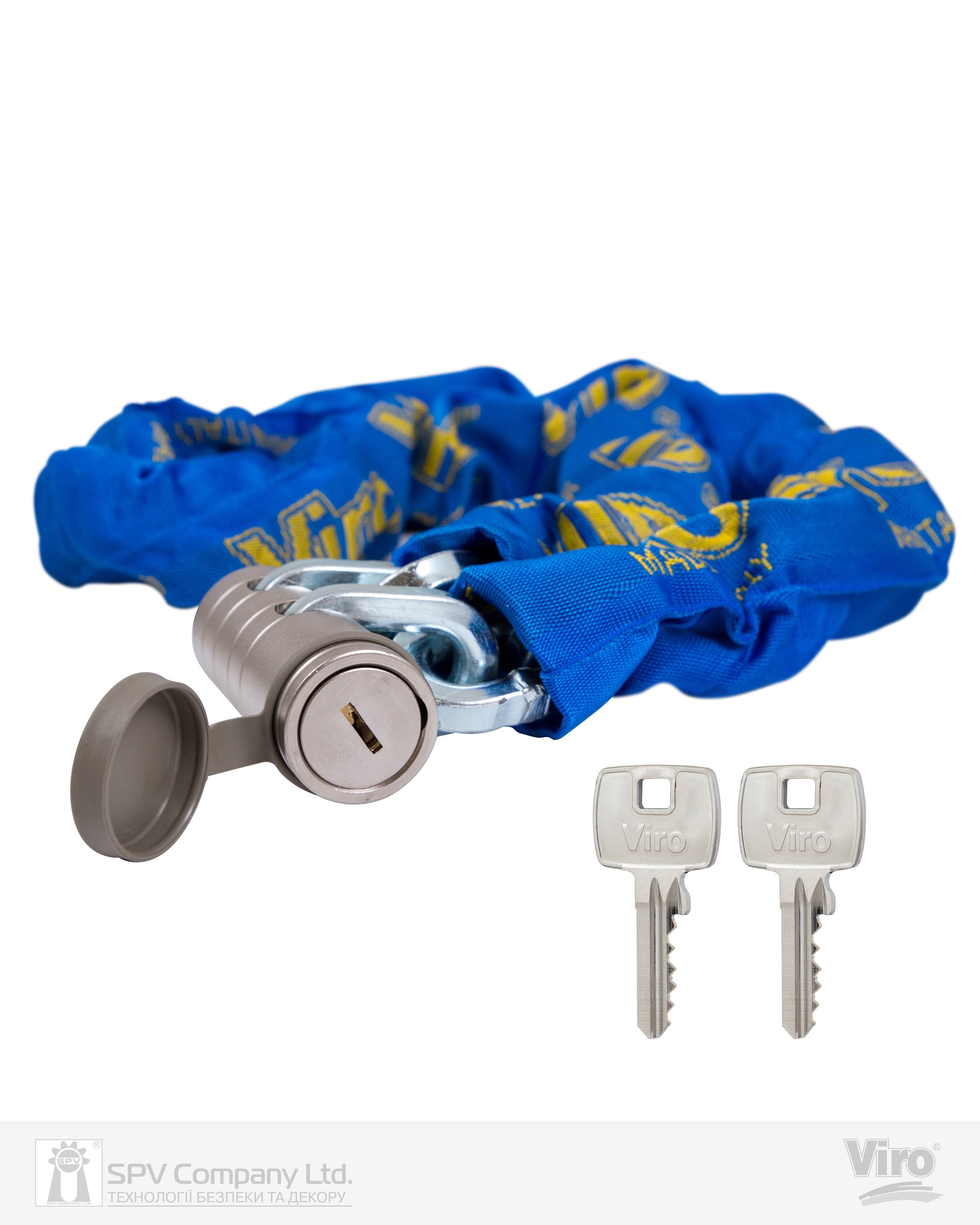 Ключі: 2 шт., з нікельованої латуні, профіль Viro Top Security. Ключ виймається тільки в замкненому стані.