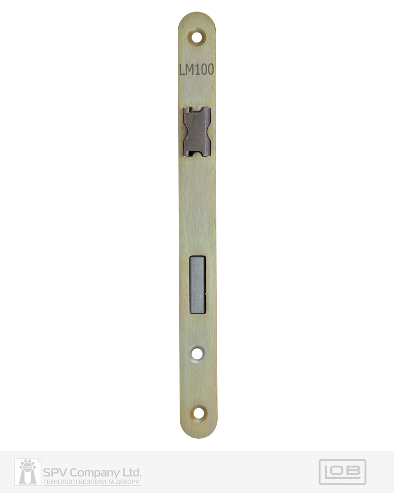 Застосовується з фурнітурою DIN стандарту. Mіжцентрова відстань 72 мм. BackSet 50 мм. Вихід ригеля 10 мм. Нереверсивна заскочка. Сторонність – правий. Торцева планка: обробка – порошкова фарба під латунь. Зворотна планка замовляється окремо.