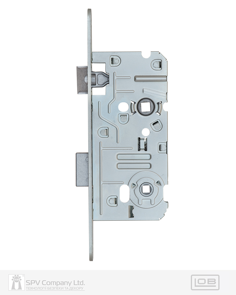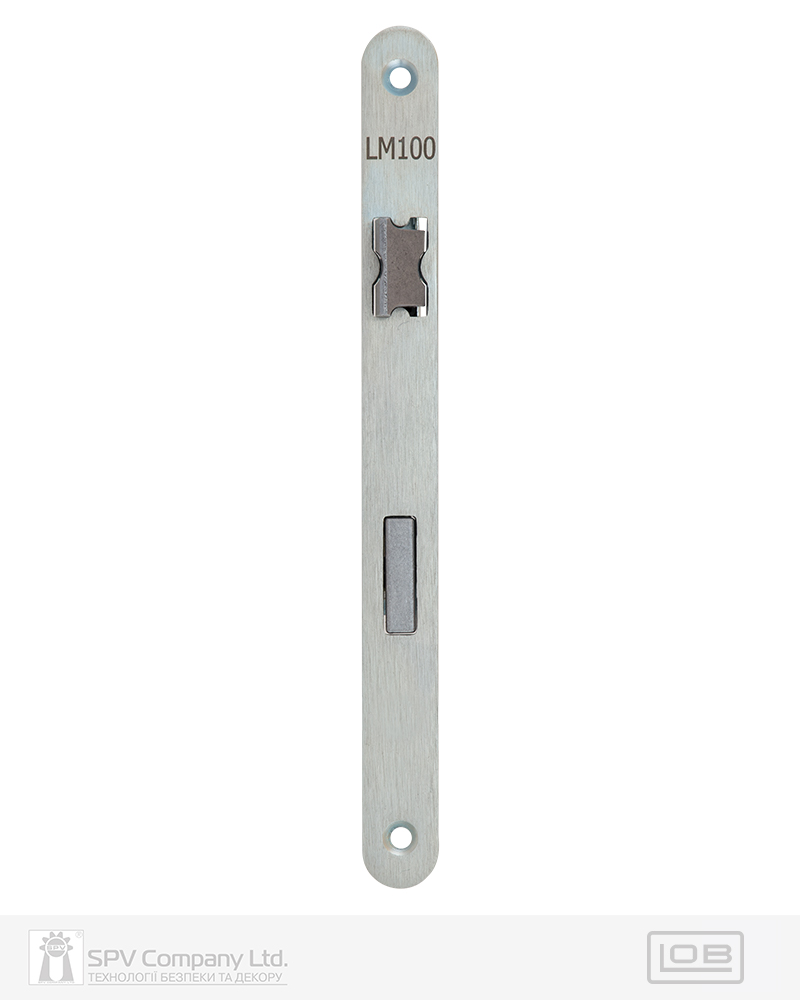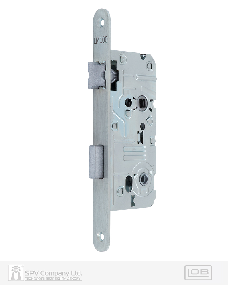 Замок для сантехнічних приміщень LM 100 WC. Замикання – поворотною кнопкою 6 мм. Засовується з фурнітурою DIN стандарту. Mіжцентрова відстань 72 мм. BackSet 50 мм. Вихід ригеля – 10 мм. Нереверсивна заскочка. Сторонність – лівий. Торцева планка: обробка – оцинкована сталь. Зворотна планка замовляється окремо.