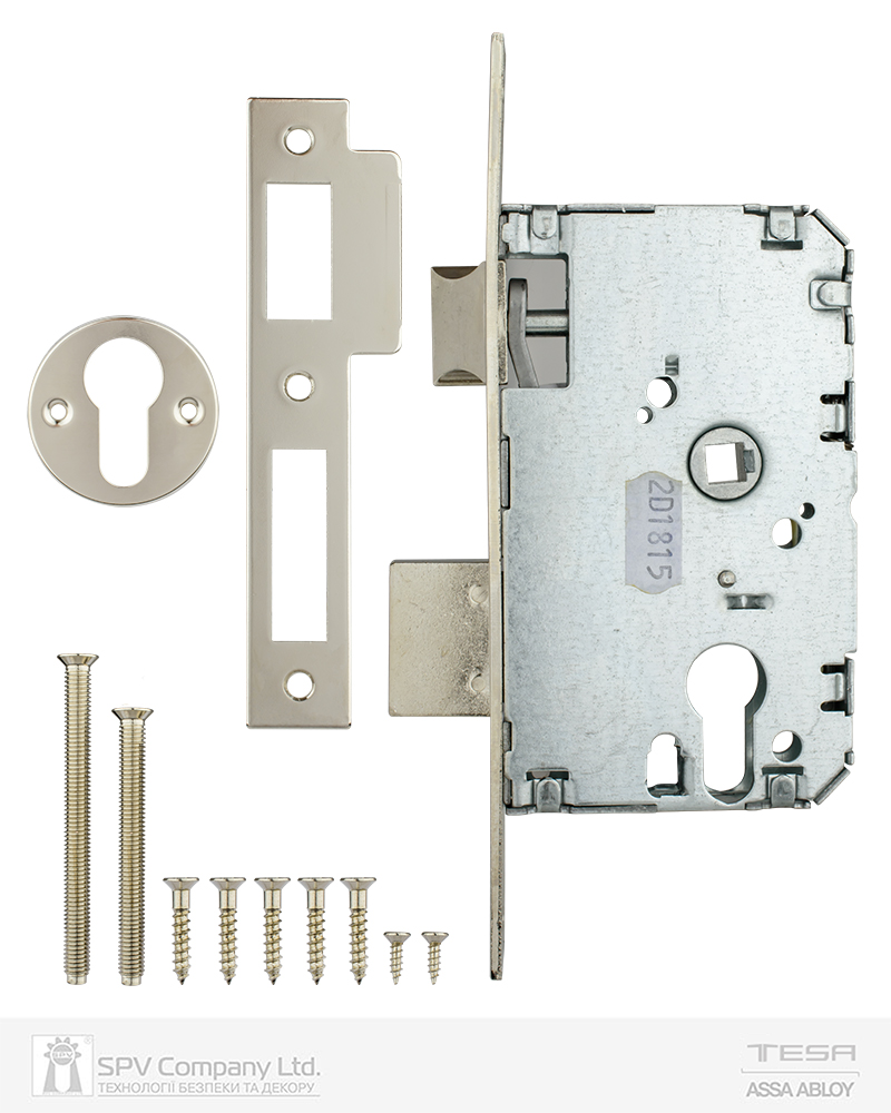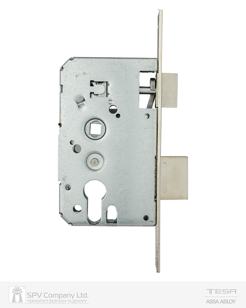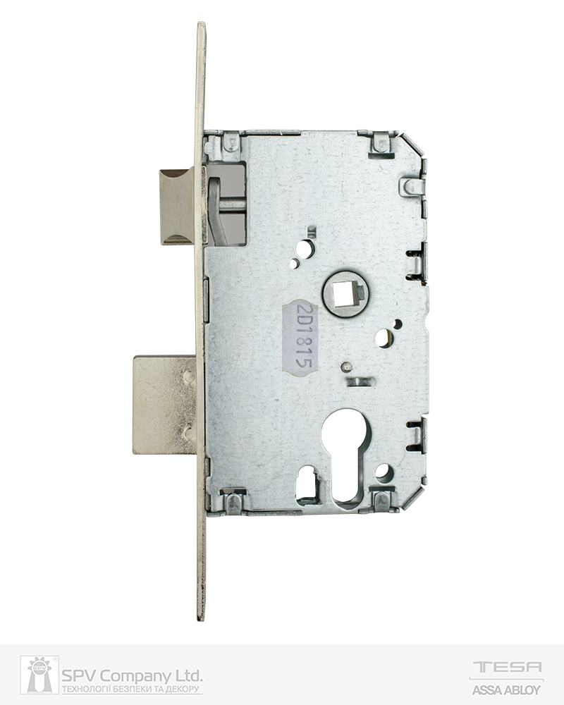 Замок врізний TESA 2010P. Сторонність універсальна. Backset 50мм. Міжосьова відстань 47мм. Торцева планка 23мм, обробка - сталь оцинкована
