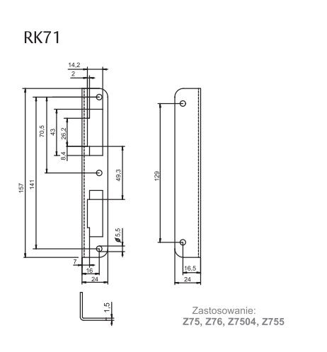 Зворотня планка для дерев"яних дверей з фальцем. Використовується з міжкімнатними замками ЛМ 100. Універсальна. Обробка цинк.