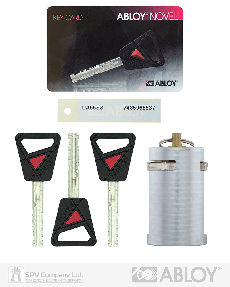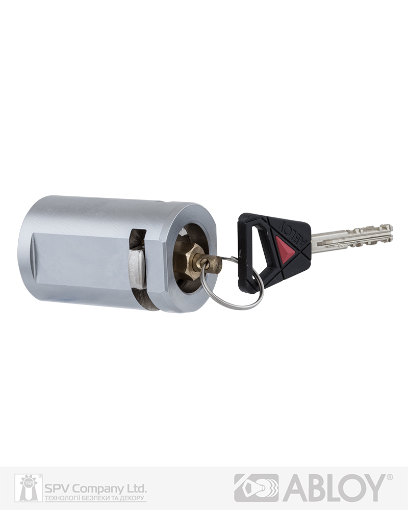 Односторонній циліндр з загартованої сталі у профілі NOVEL використовується для зберігання ключів у квартирах, офісних центрах чи на виробничих комплексах у спеціальному стальному депозитарію для ключів ABLOY KD202, який вмуровується в стінний отвір у середині приміщення. Плуг циліндра виготовлений із латуні. Клас безпеки - 3. Базова комплектація: 3 ключі, кодова картка для виготовлення дублікатів ключів, обробка - матовий хром (MCR).
