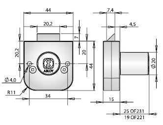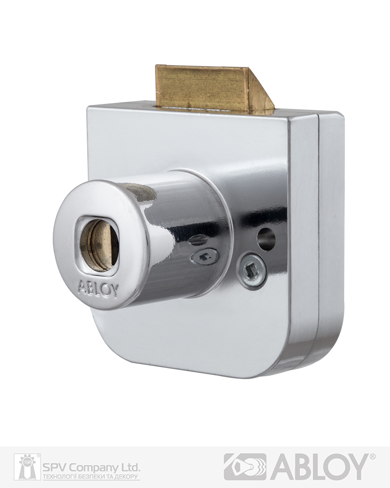 Врізний замок ABLOY OF221 з скошеним ригелем для офісних меблів (металеві, дерев`яні шкафчики для одягу, аптечки, ящики, тощо). Максимальна товщина дверей 19 мм. Циліндр Classic з 7 дисками. Гніздо циліндра із хромованого цинка, ригель із латуні. Комплектація: замок, 2 ключі та кодова картка.