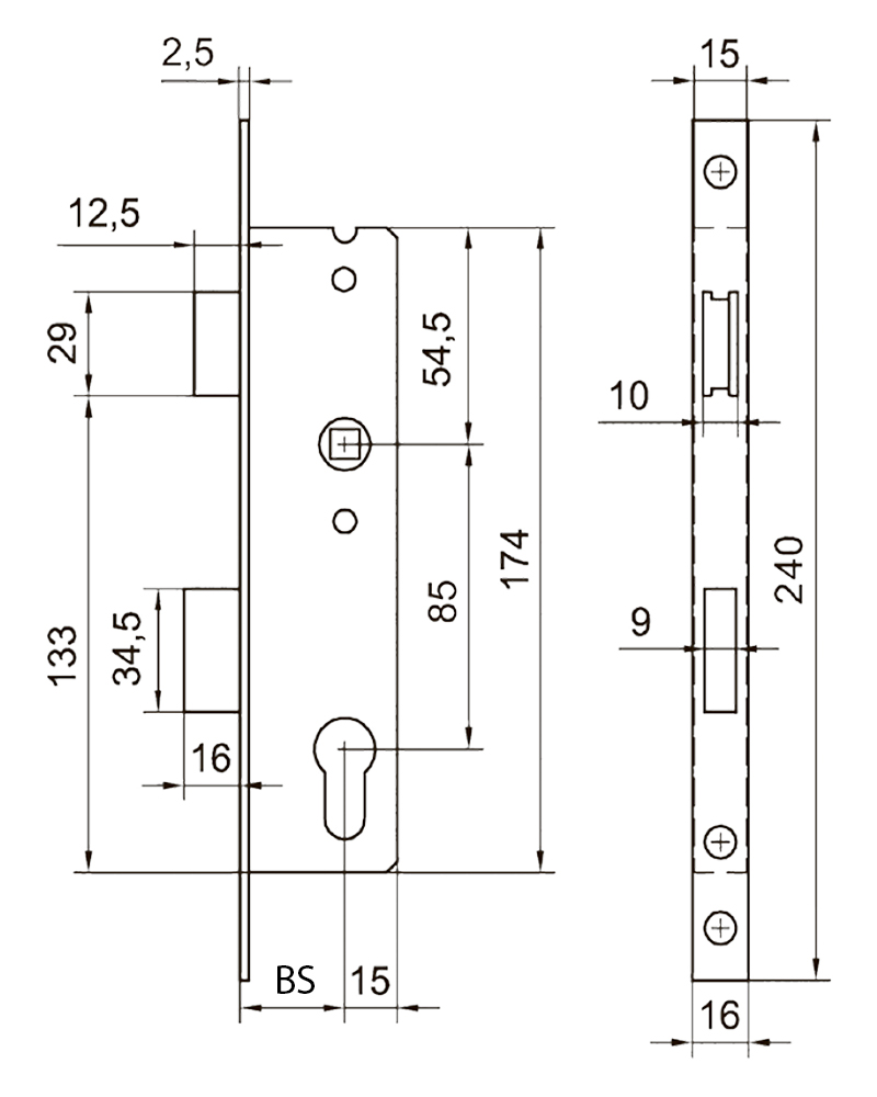 Основний замок ISEO 35-158 для профільних ПВХ дверей під циліндр DIN.