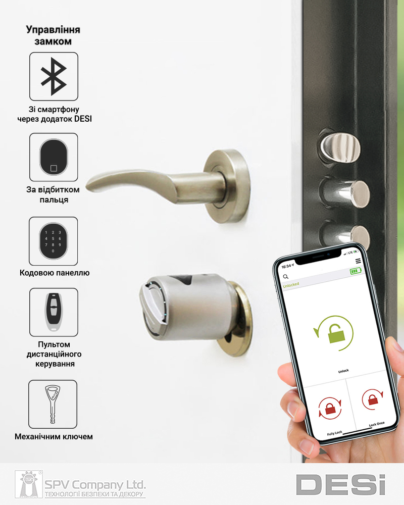 Контролер DESI Utopic дозволяє здійснювати всі налаштування, керувати дверима, правами доступу користувачів через мобільний додаток смартфону DESI Utopic Smartlock.