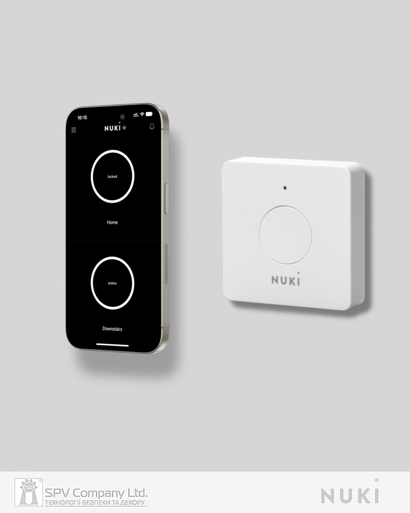 • Інтеграція з Google Home, Alexa, Apple HomeKit, IFTTT для автоматизації (при використанні Nuki Bridge).