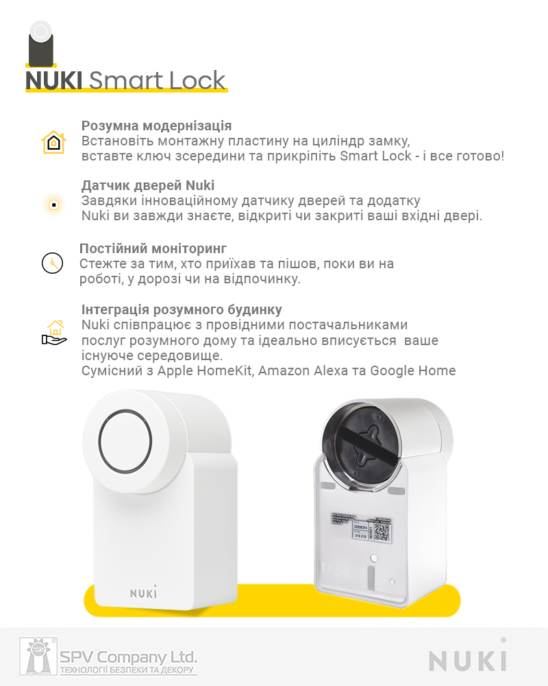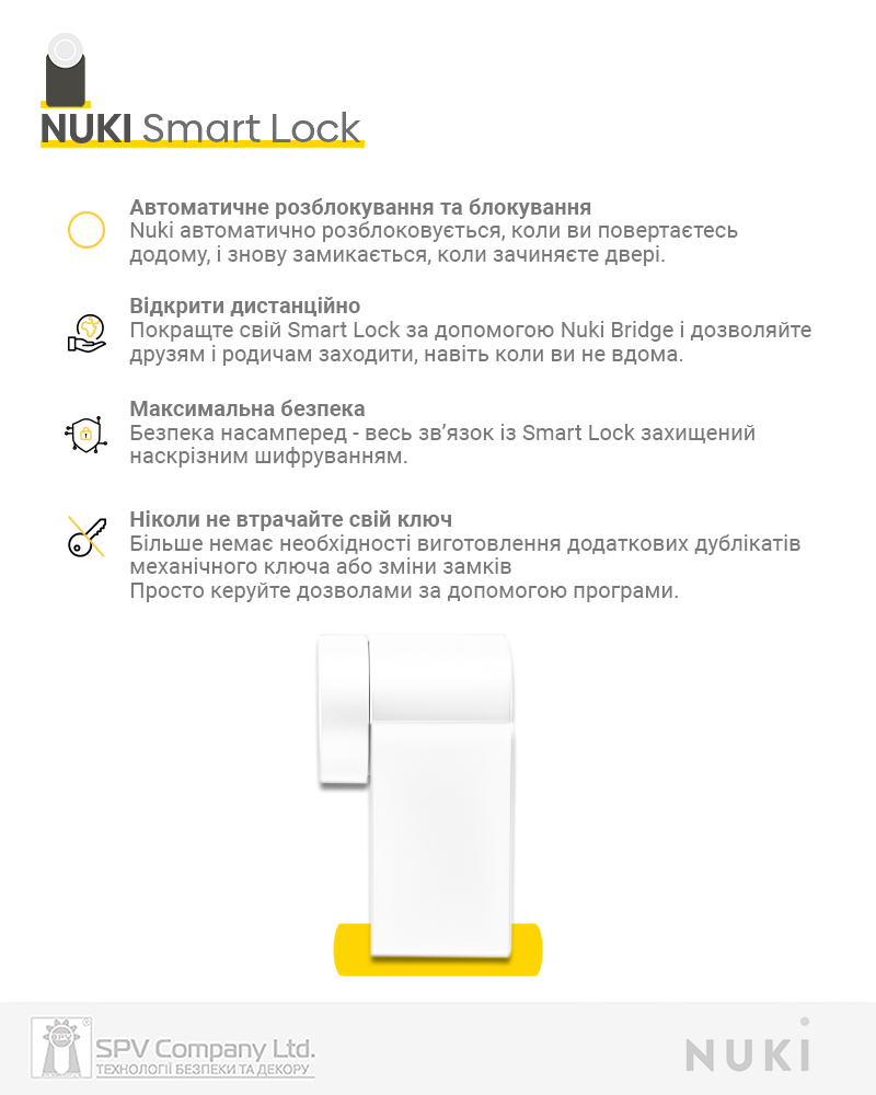 Електронний контролер Nuki Smart Lock надає користувачу максимальну зручність в повсякденному користуванні, гнучкість адміністрування, надійний контроль та безпеку.