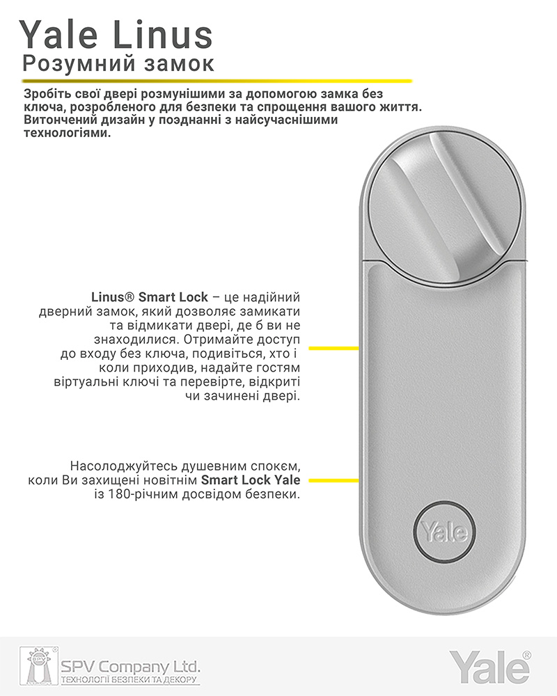 Електронний контролер YALE LINUS L2 робить Вашу оселю розумнішою та спрощує Ваше життя. YALE LINUS L2 – це розумний замок нового покоління, який дозволяє відмикати та замикати двері не зважаючи на те, де Ви знаходитесь*.