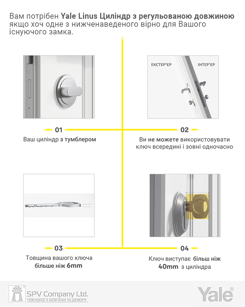Спеціальний циліндр YALE з регулюванням розміру для використання виключно з Електронний контролер YALE LINUS