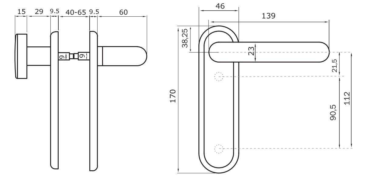 - Стандартна комплектація на двері завтовшки 40-63 мм
