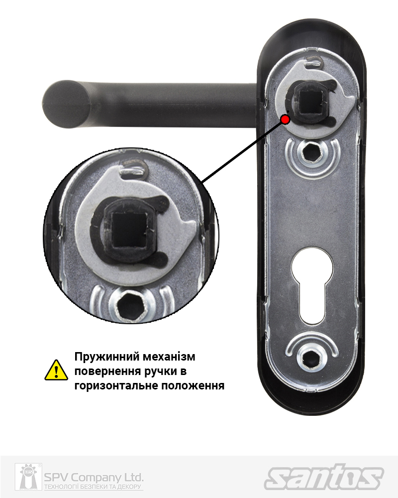 Інтегрована пружина повертає ручку у горизонтальне положення