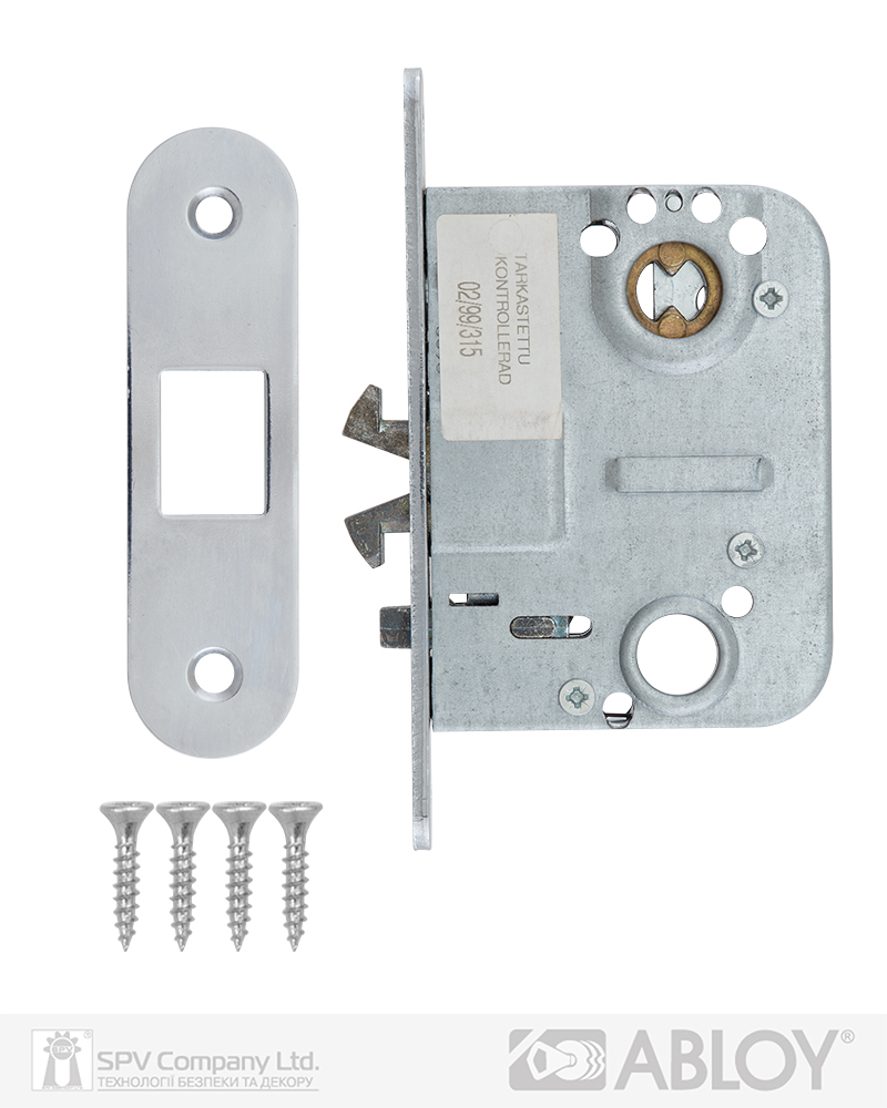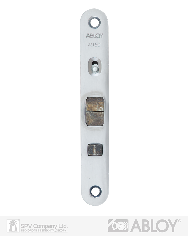 Основний замок ABLOY 4960 під циліндр скандинавського стандарту FIN з гакоподібним ригелем з автоматичним замиканням для складних і розсувних дверей. Можливе використання як одноходових циліндрів фінського типу Abloy Classic, Abloy Profile, так і двохходових циліндрів фінського типу Abloy Protec2, Abloy Novel