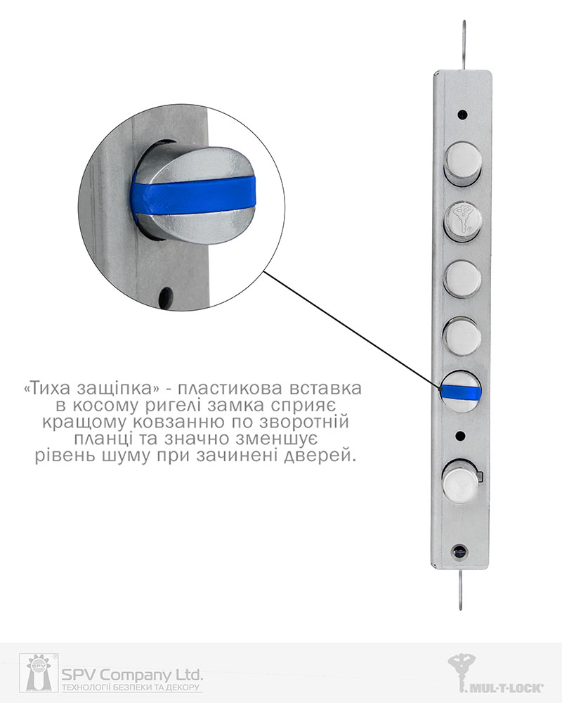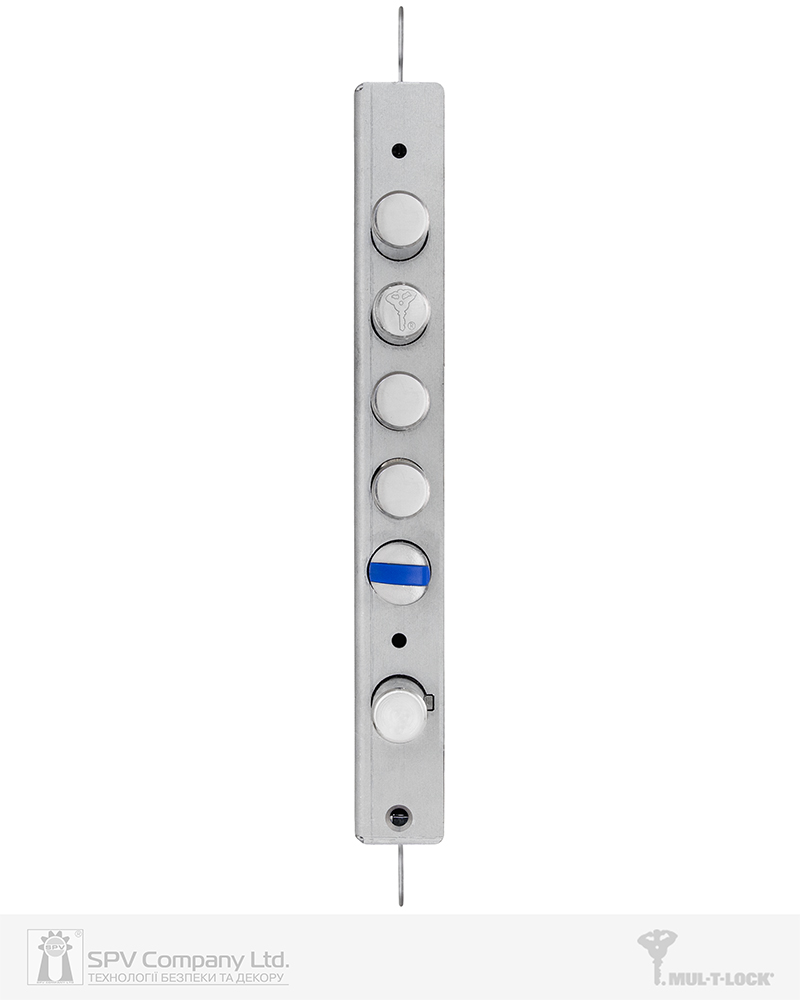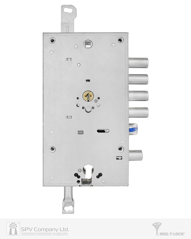 Циліндровий механізм стандарту EuroDIN керує додатковим ригелем та блокує «основний» замок. Патентований шестеренчастий механізм приводу ригелів.