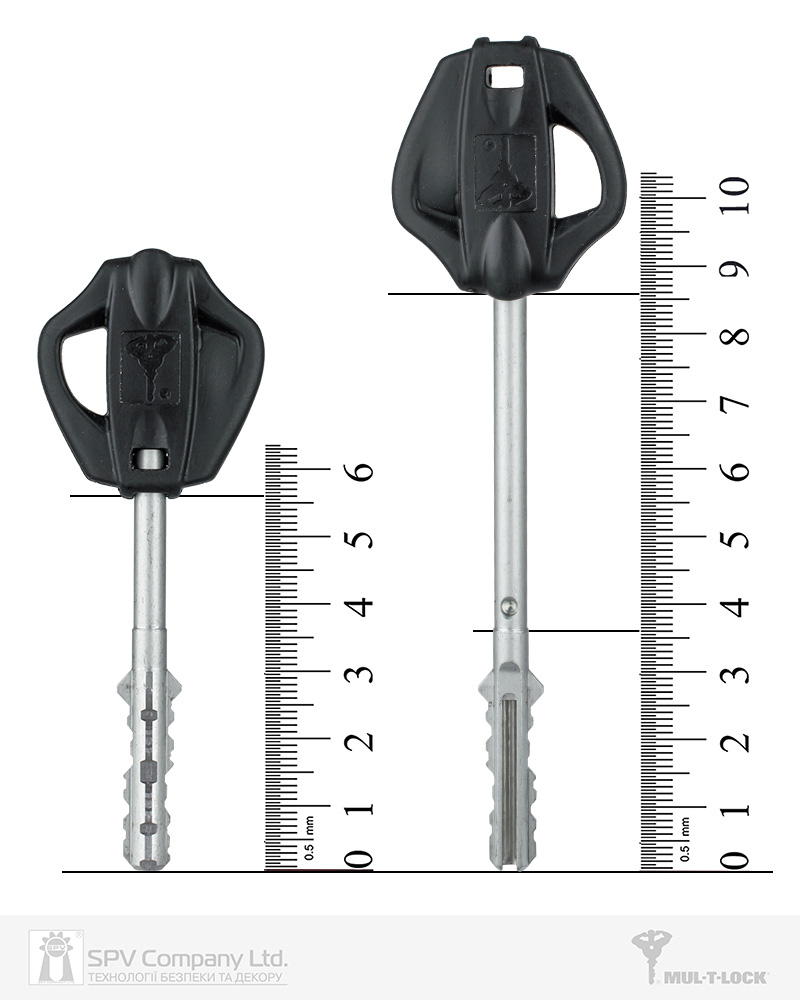 При встановленому ключі в замку циліндра типу Омега, максимальна відстань від поверхні дверного полотна до центру замка складає 61 мм із внутрішньої та 61 мм із зовнішньої сторін.