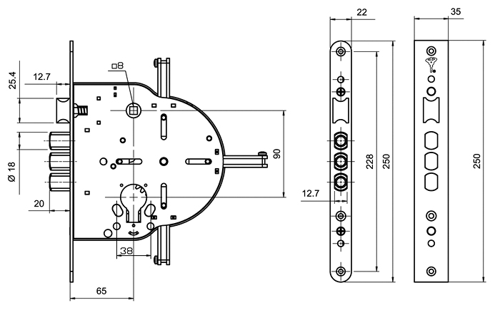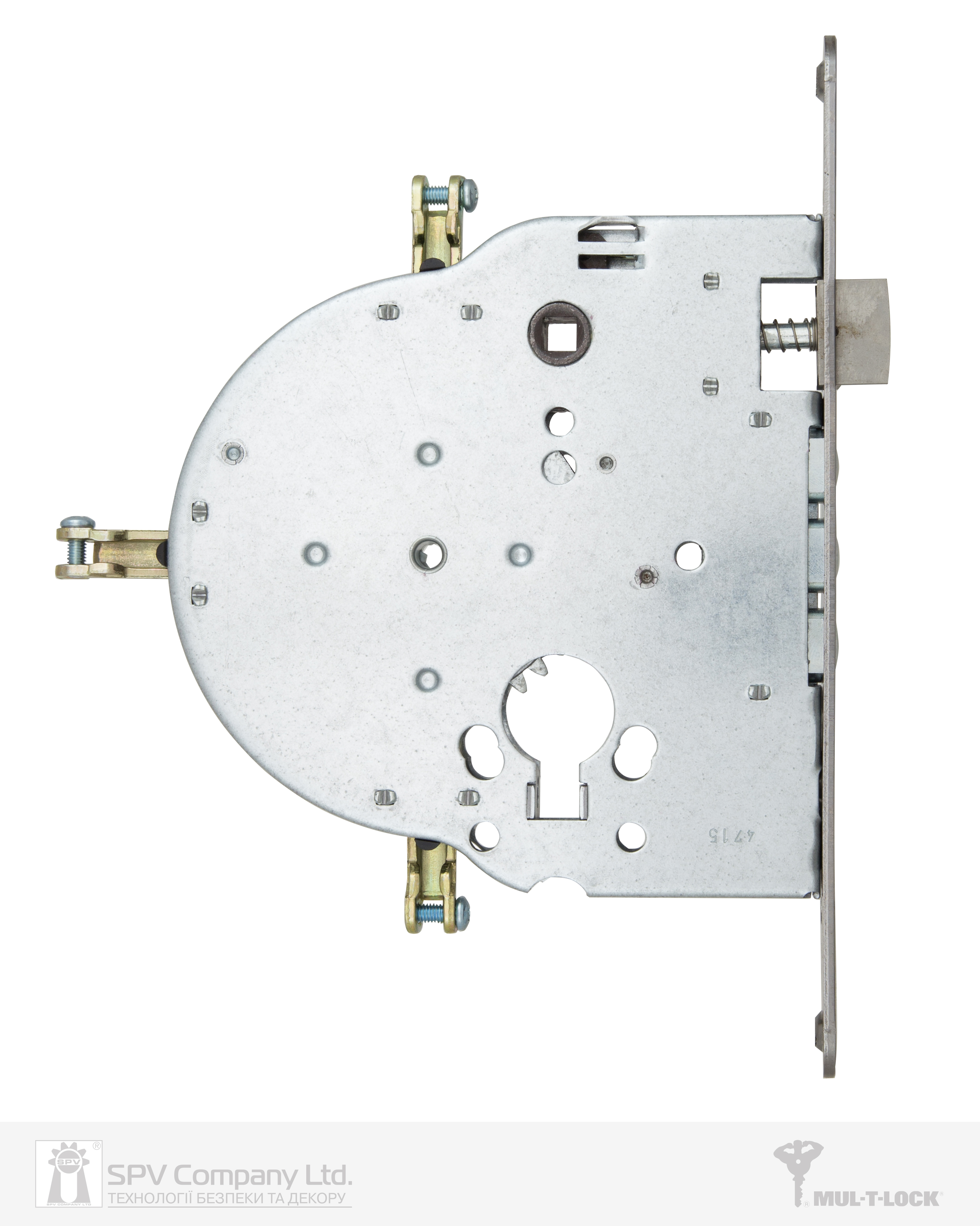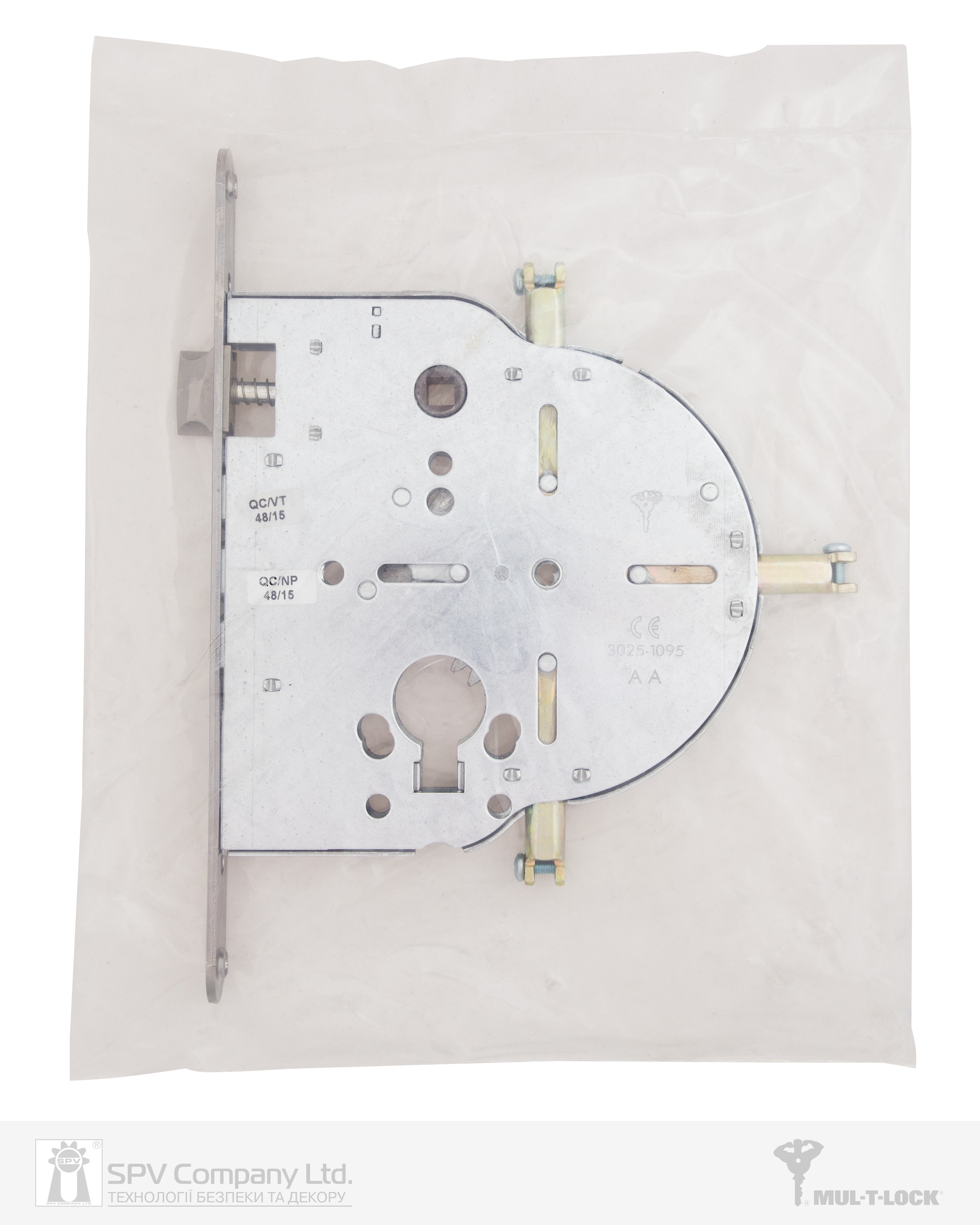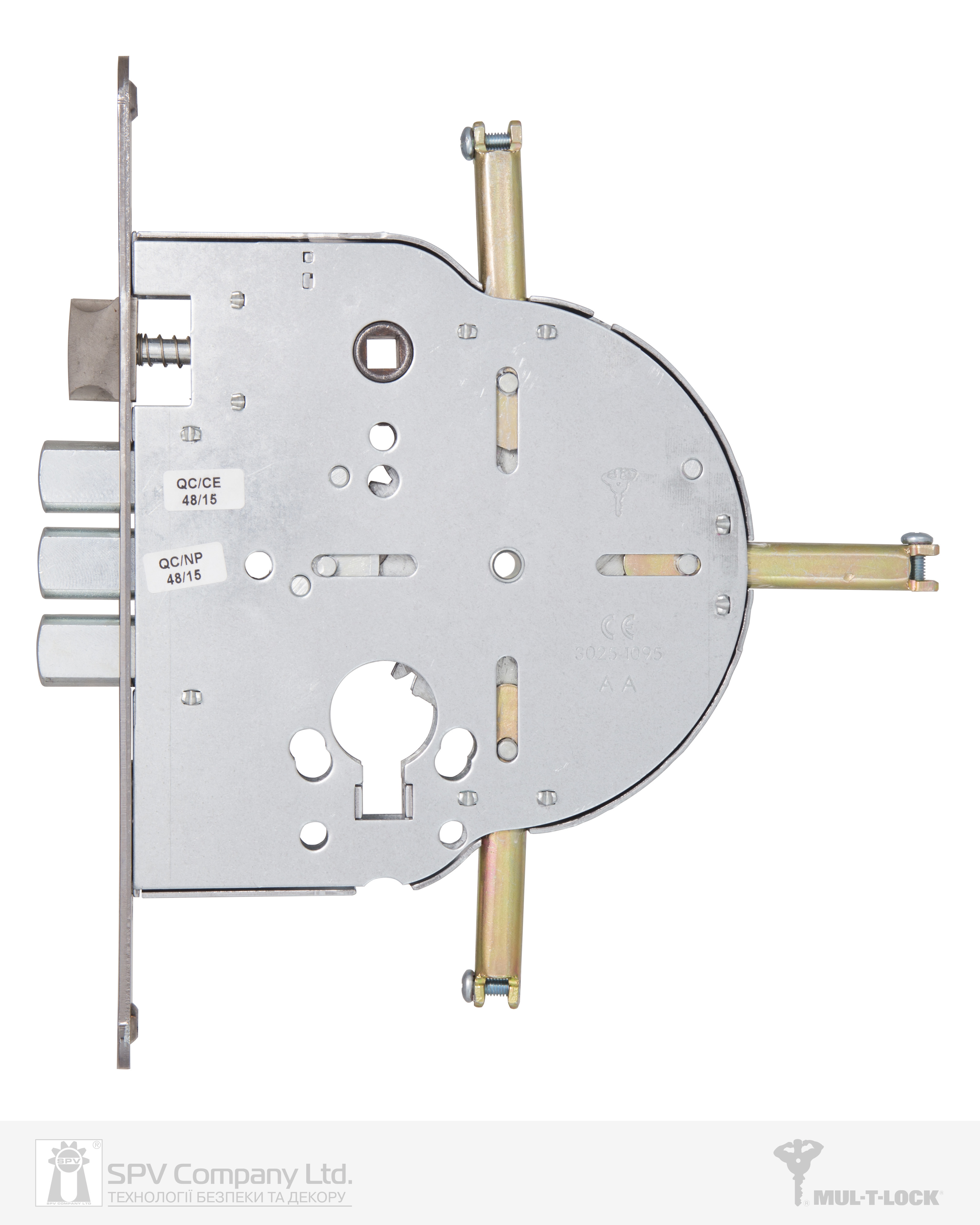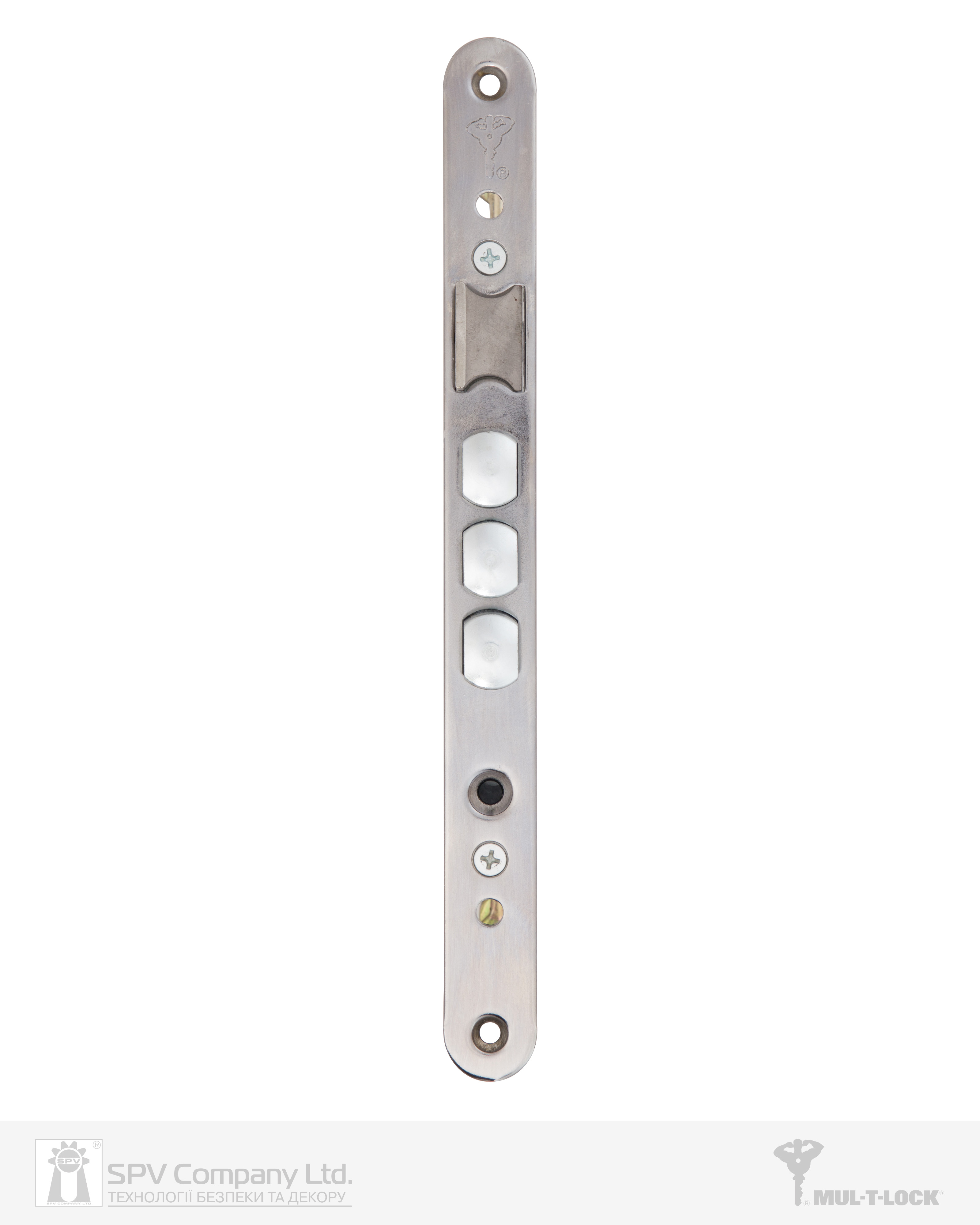 Основний замок 4-направленого замикання MUL-T-LOCK M603. Зручне замикання одним обертом ключа. Можливість від’єднання тяг при вмонтованому у двері замку. Застосовується з циліндром EuroDIN із шестернею та захисною фурнітурою MUL-T-LOCK або ROSTEX. Для додаткового захисту – застосування додаткового механізму Gladiator або М12 (1 або 2 шт.). Mіжцентрова відстань 90мм. BackSet 65мм. 3 сталеві ригелі Ø 18х12мм. Реверсивна заскочка з нержавіючої сталі. Зворотна планка замовляється окремо.