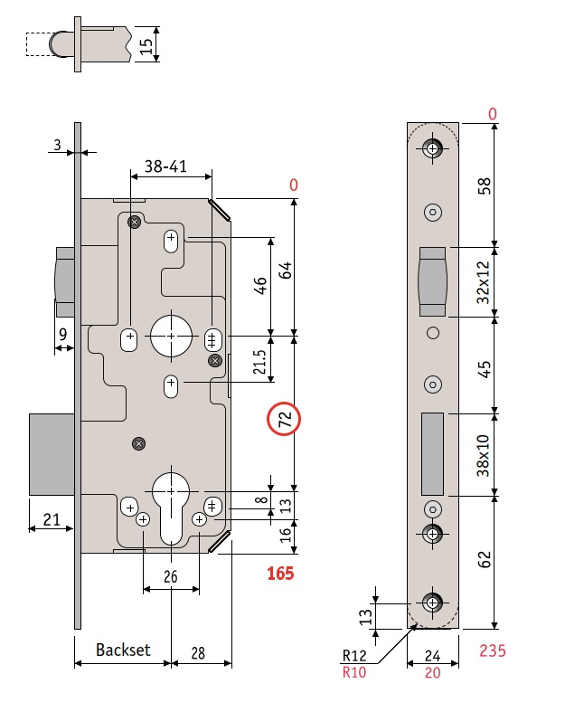 Основний замок Santos Sash Lock 712 серії має масивний прямокутний ригель і роликову заскочку.