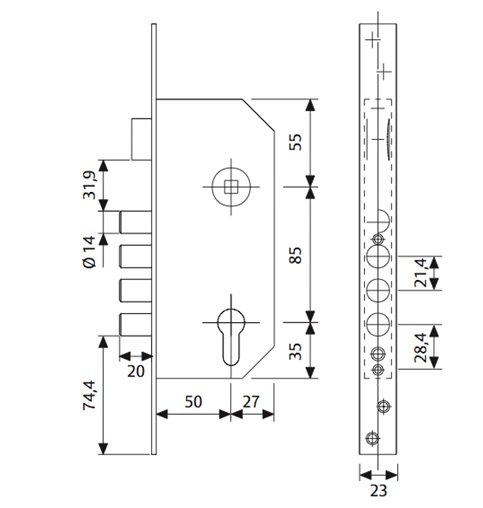 Потужний врізний основний замок для вхідних дверей.