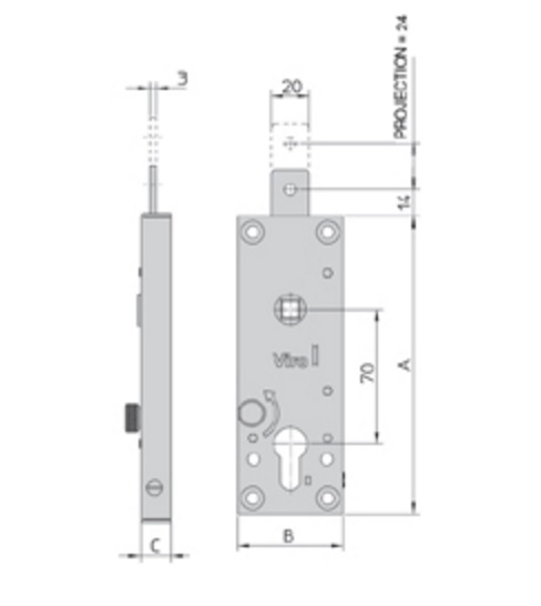 Замок 8234 взаємозамінний з найбільш поширеними вже встановленими замками для підйомно-поворотних воріт. Конструкція і внутрішні деталі з оцинкованої сталі. Стандартні наскрізні отвори DIN для кріплення броненакладки. Затвор зі сталі, товщина 3 мм, вихід 24 мм. Призначені для полуциліндрів європейського профілю DIN. Міжосьова відстань (відстань від замкової щілини до ручки) 70мм. Затвор приводиться в дію ручкою зсередини і зовні, отвір для ручки 8 мм. Відкриття можливе зсередини підпружиненою ручкою, яку неможливо дістати зовні інструментами для зламу.