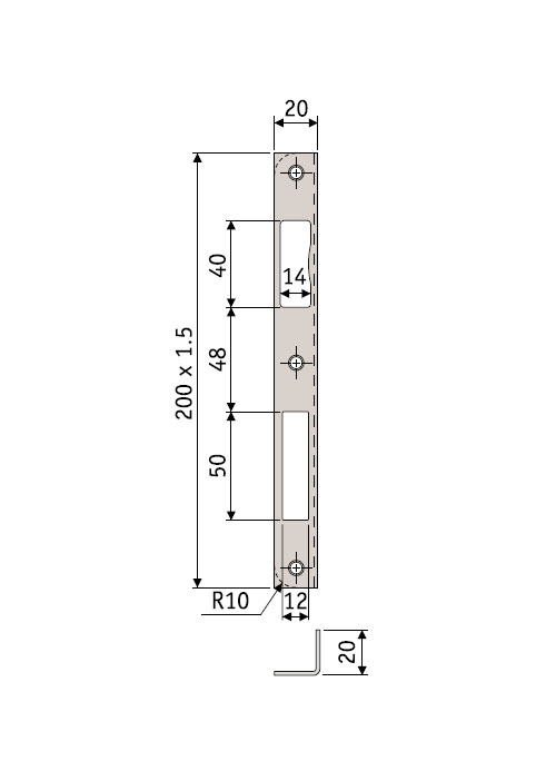 Сталева зворотня планка для замків серії 7. Використовується під дерев"яні двері з фальцем, колір - нержавіюча сталь